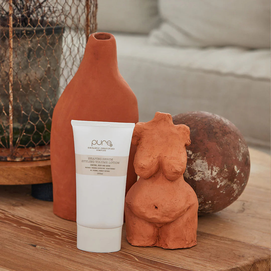 Pure Shaping Serum is a versatile styling lotion that delivers long-lasting body, texture, and shine while maintaining natural movement. Its innovative formula includes bodifying agents and the Pure Organic Complex™, which nourish and protect hair from environmental damage, sun exposure, and heat styling tools.